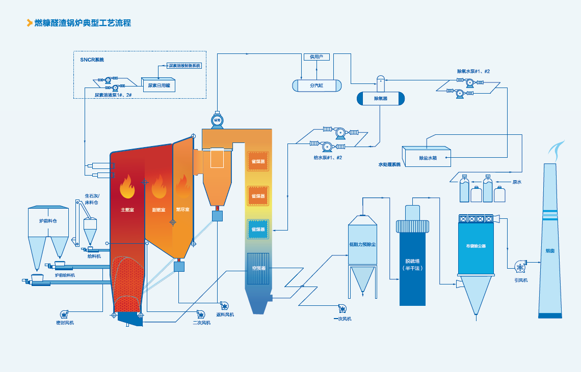 以純?nèi)伎啡┰P式循環(huán)流化床鍋爐為工業(yè)園區(qū)供汽,熱效率88.87%,環(huán)保性能實出,經(jīng)濟效益顯著。
